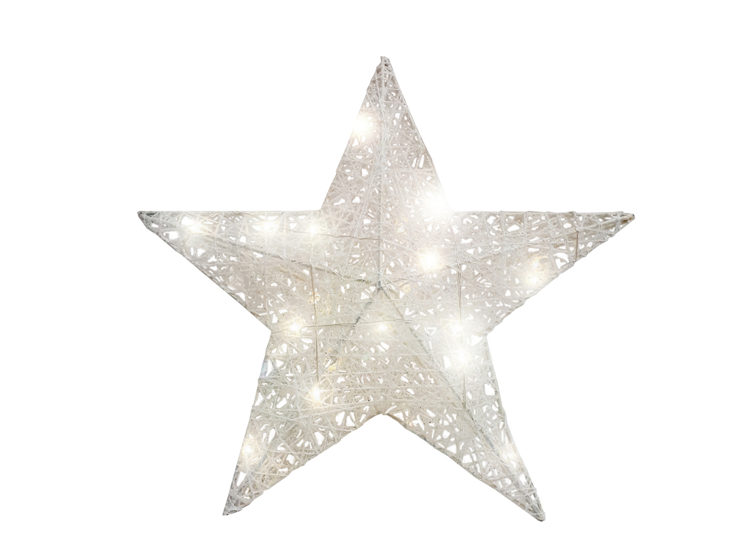 Hvězda vyrobená z kovového drátku poglitrovaná. Vhodná k dozdobení vánočních dekorací a aranžmá nebo pouze k zavěšení. Elegantní ozdoba na okna, na vchodové dveře, na stromeček apod. materiál kov velikost 20cm barva bílá