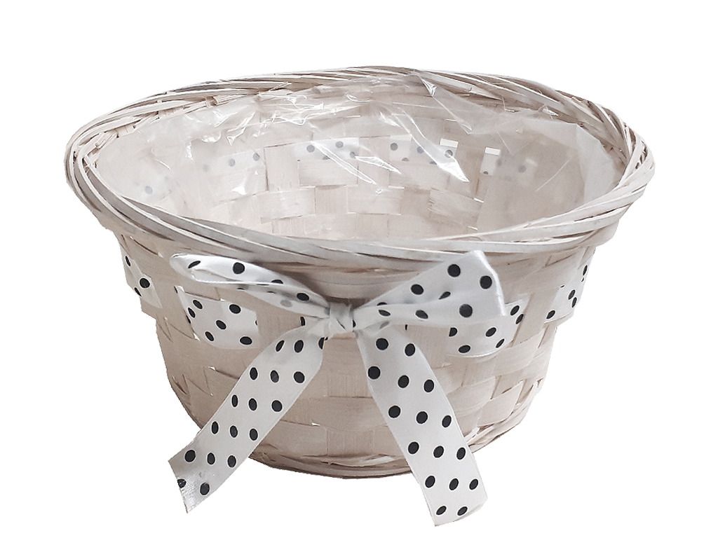 Miska proutí 19 cm kulatá bílá s mašlí