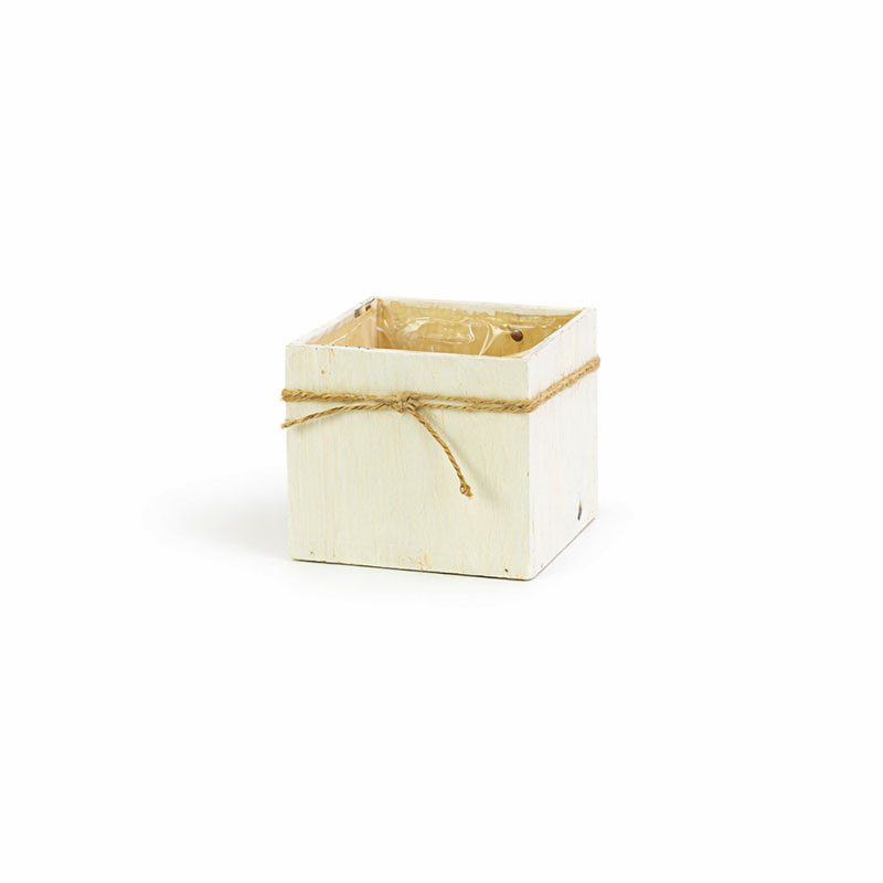 Obal na květináč bílý, dekorativní bytový doplněk z přírodního materiálu. Materiál: dýha Velikost: délka 11 cm, šířka 11 cm, výška 10 cm celý popis