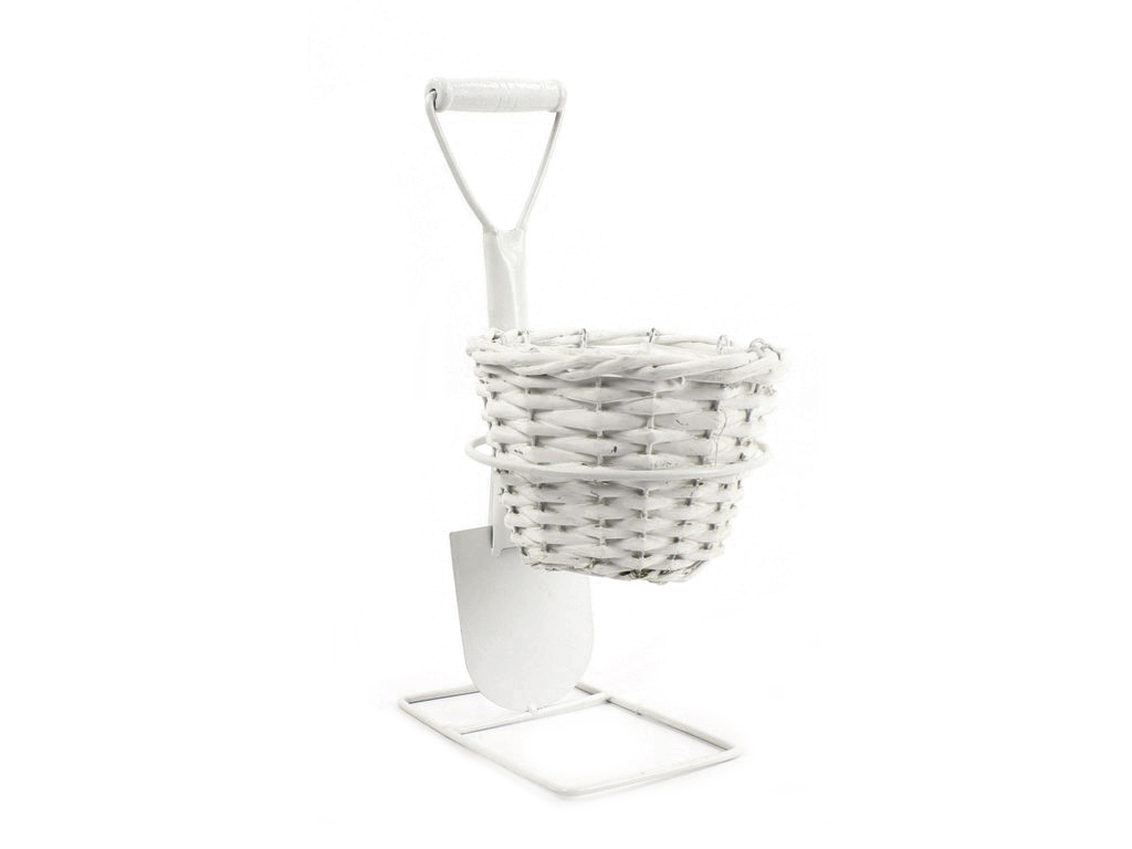 Obal na květináč bílý, proutěný doplněk do bytu i na zahradu vhodný k dalšímu aranžování, přírodní dekorace pro všestranné použití. Materiál: vrbové štípané proutí, rýč a konstrukce z kovu Velikost: ... celý popis