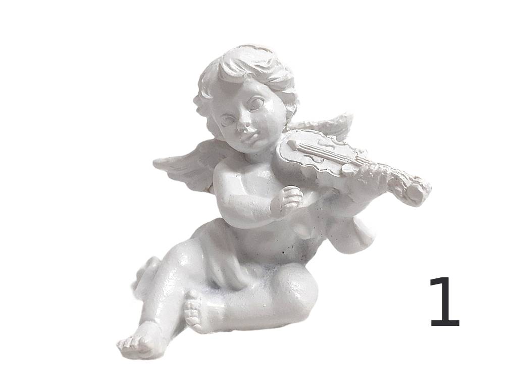 4. Anděl keramický 8 cm sedící s hudebním nástrojem bílý